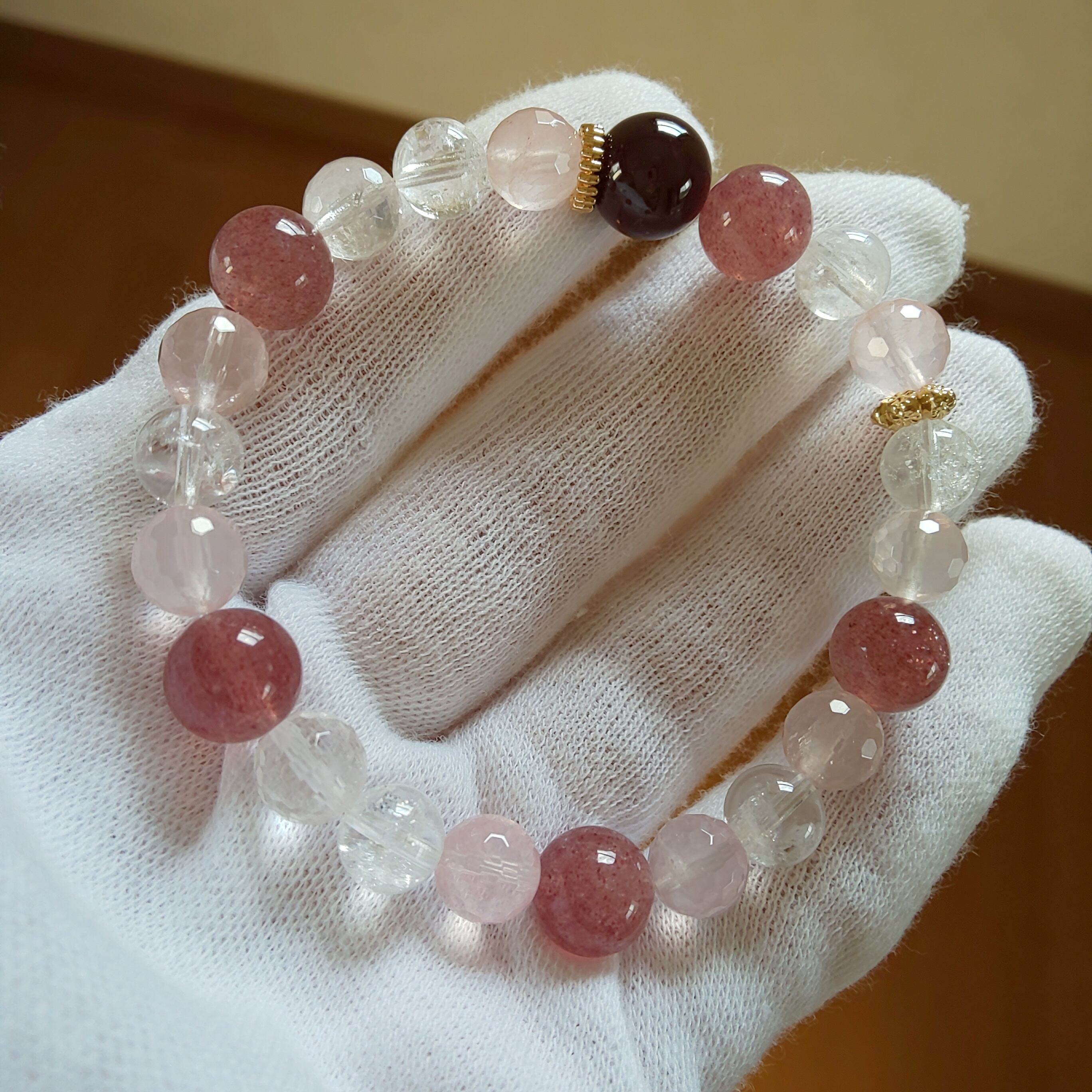 こちらはローズクオーツやストロベリーで優しいブレスに仕上げました♪