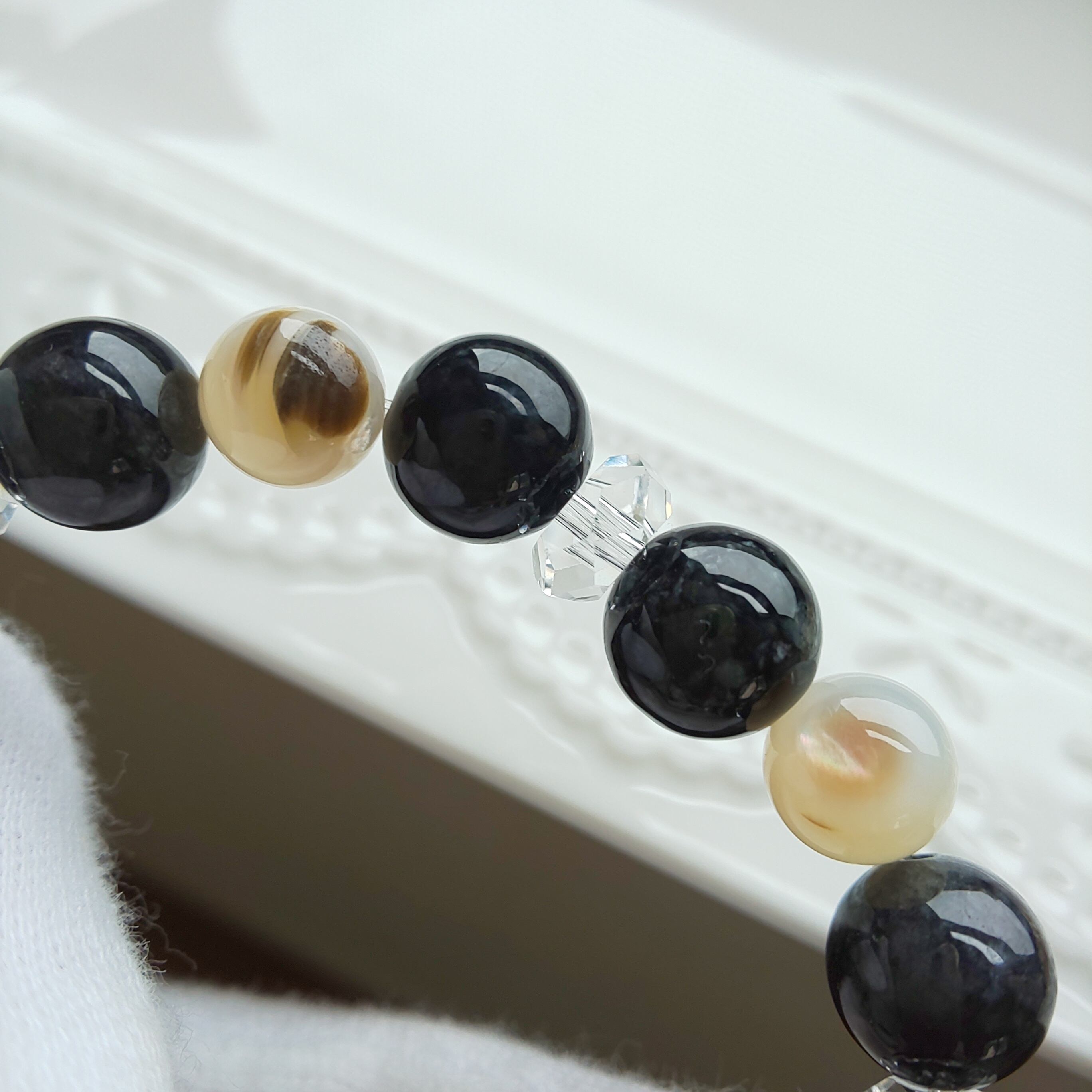 新作 極 天眼瑪瑙 黒翡翠 白蝶貝