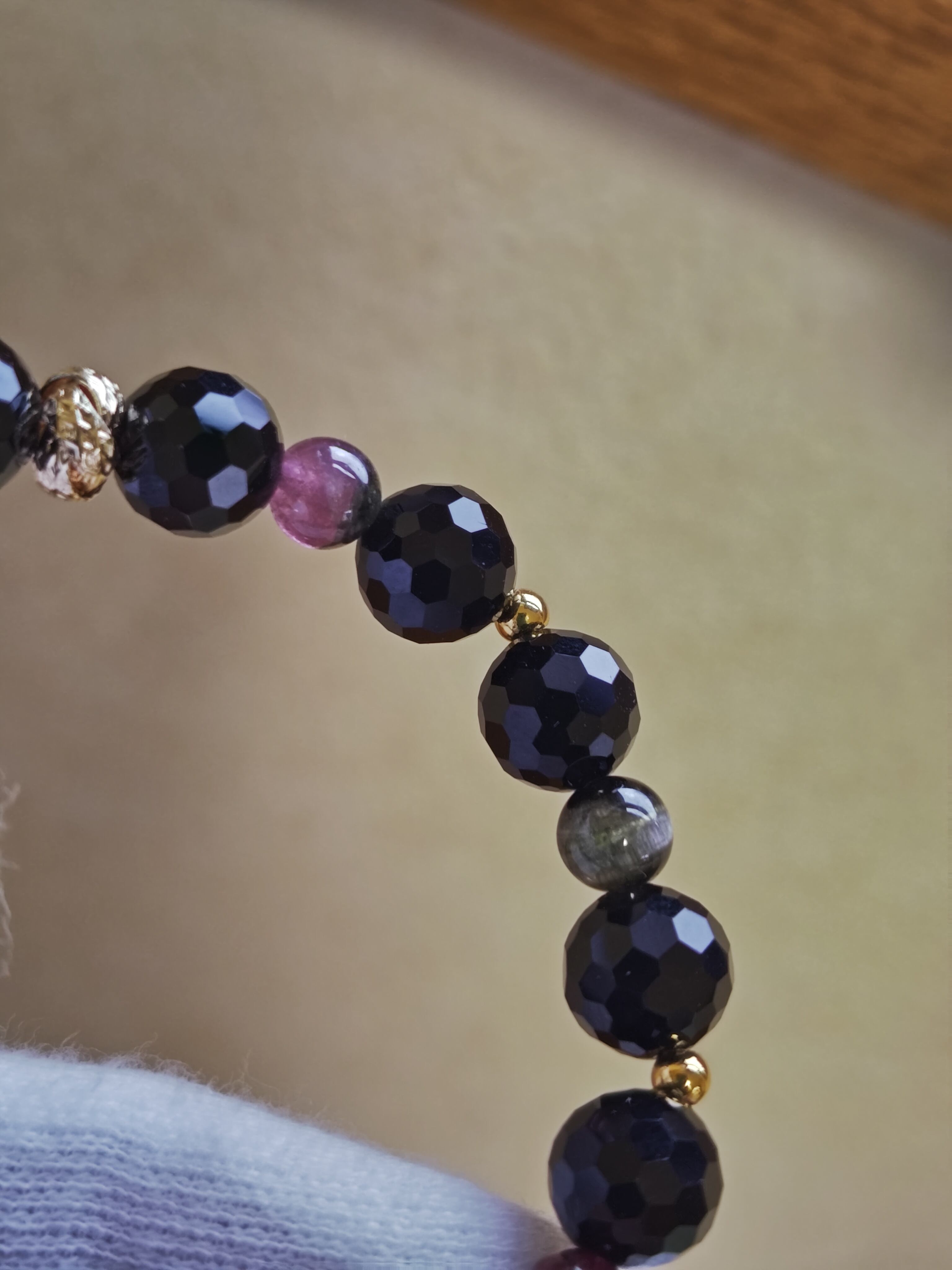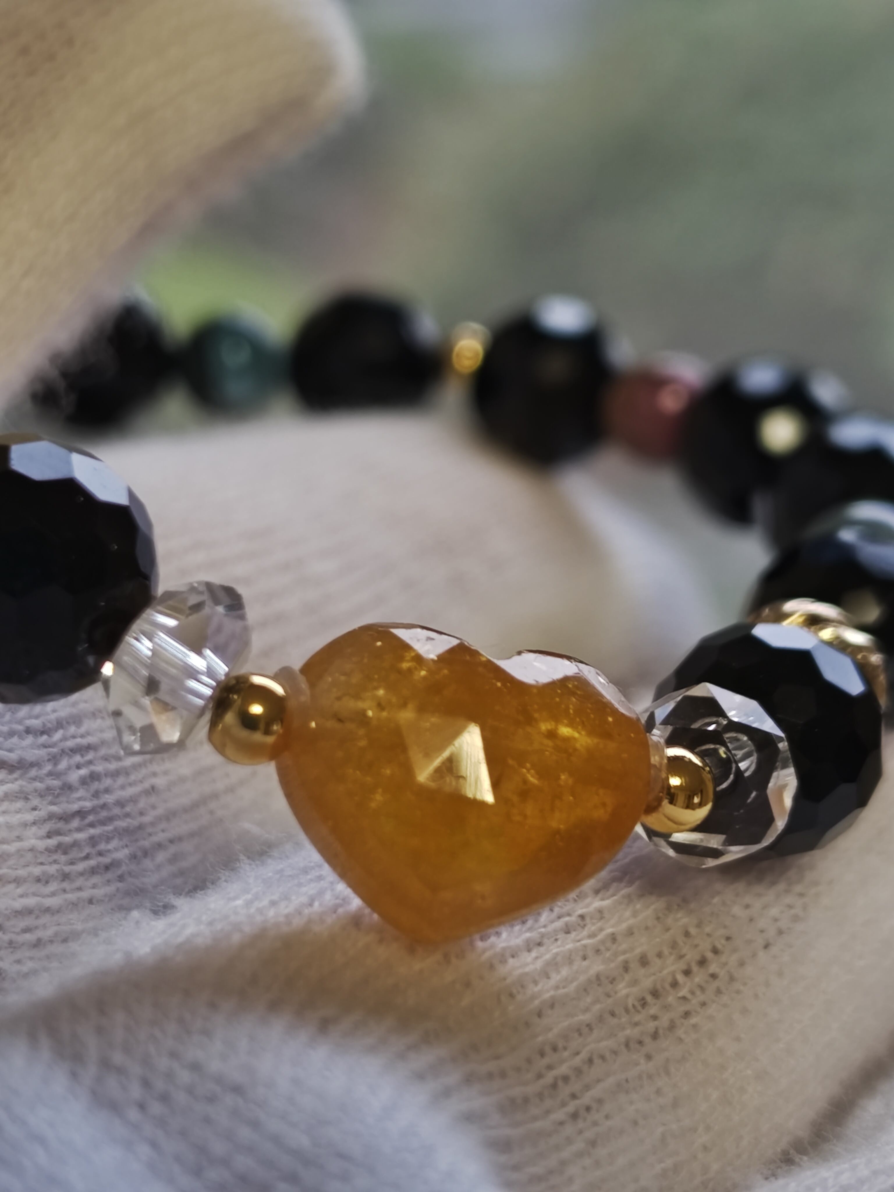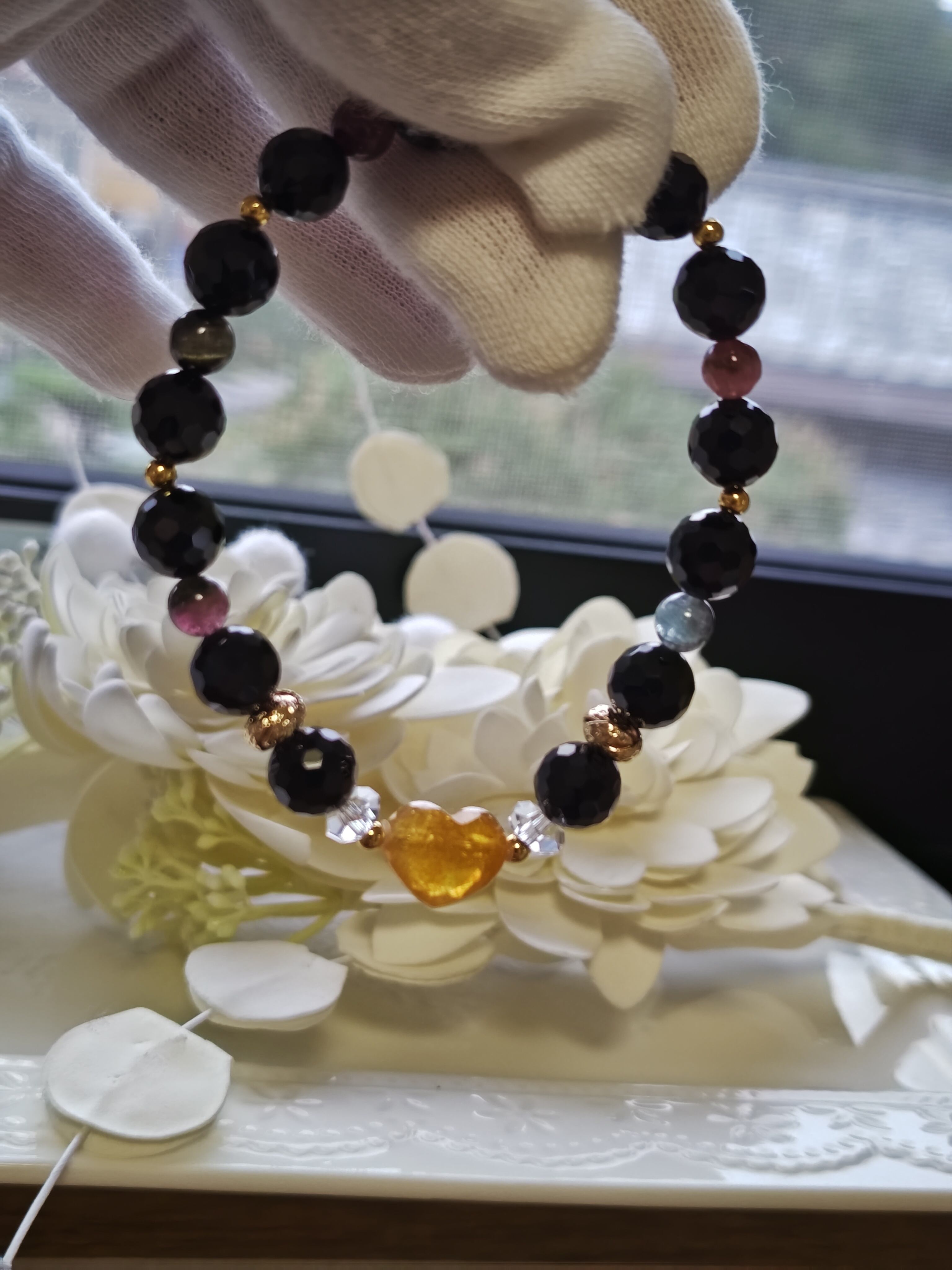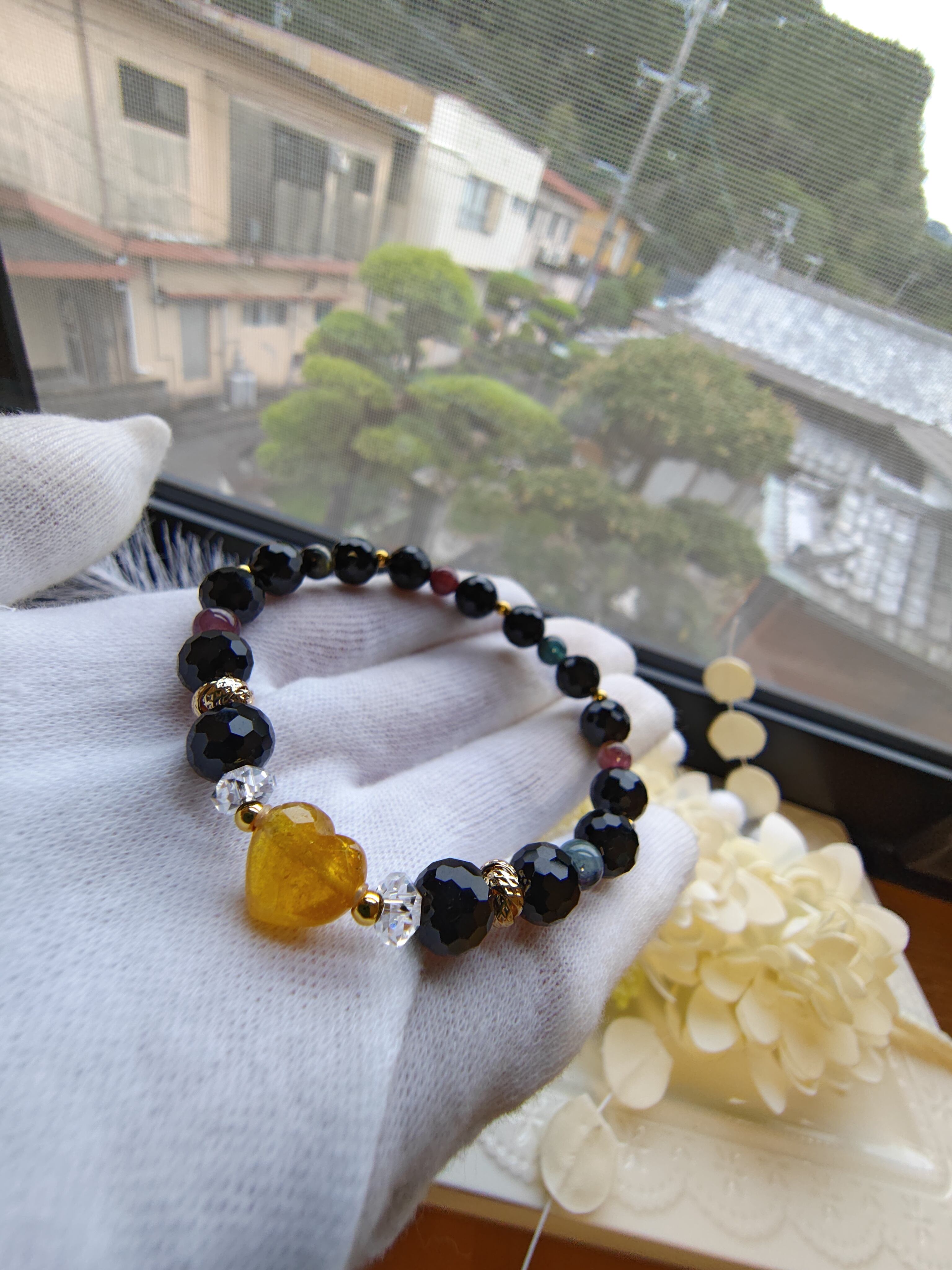 キラキラのイエローサファイア(プクラジ)♡をトップにキャッツが素晴らしいマルチカラーのトルマリンとモリオン宝石カットで上品な輝きを放つブレスに仕上げました♡