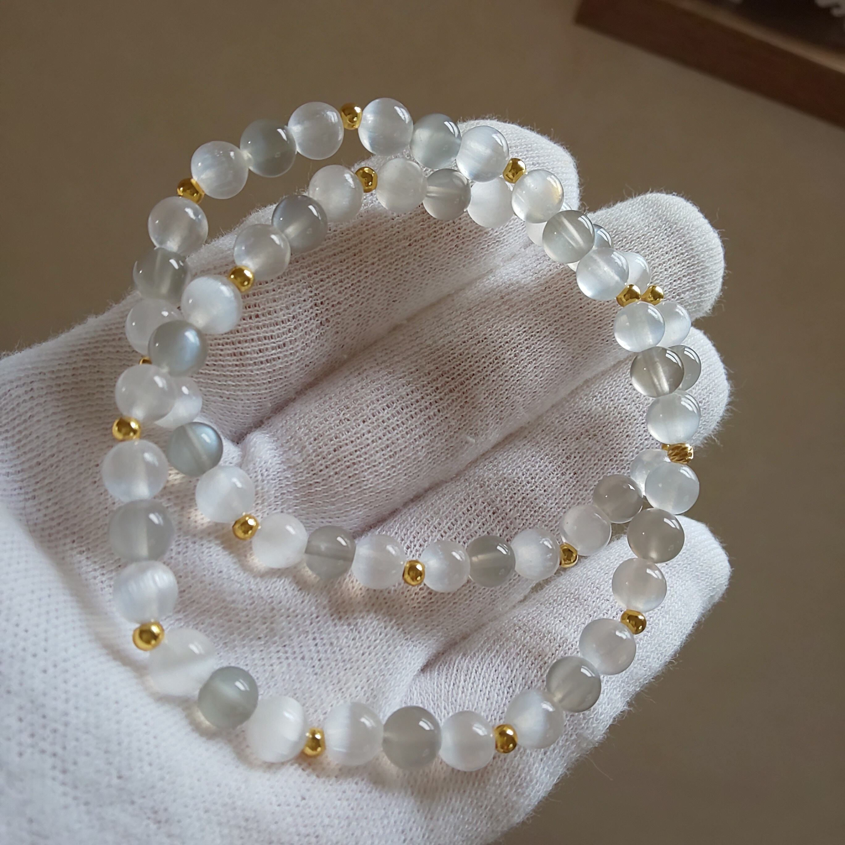 今回の二連ブレスはホワイトのセレナイトととても品質の良いグレームーンストーンで仕上げてみました♪