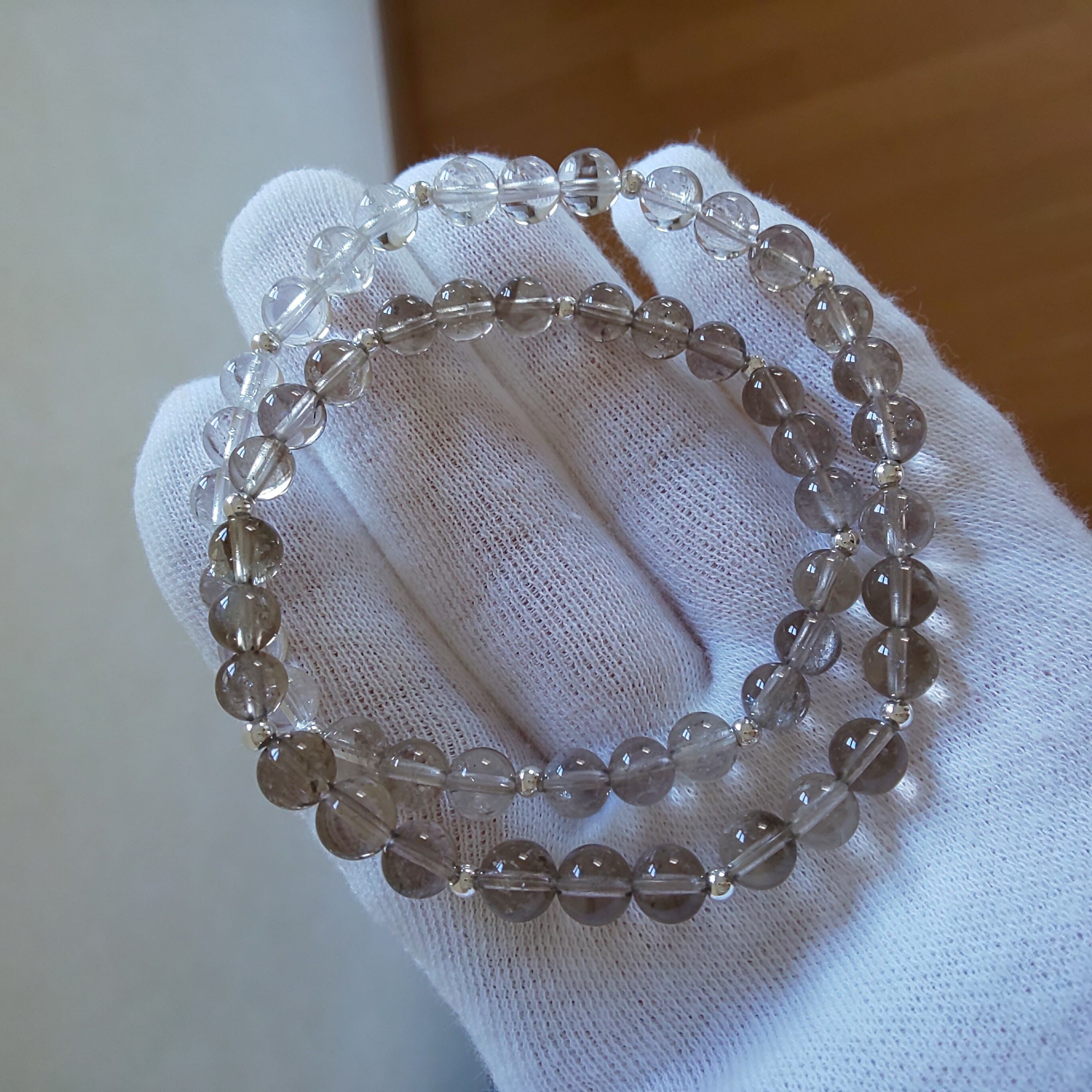 今回お初の入荷となります、小粒のレムリアン水晶とレムリアン スモーキーを贅沢に二連ブレスに仕上げました♪