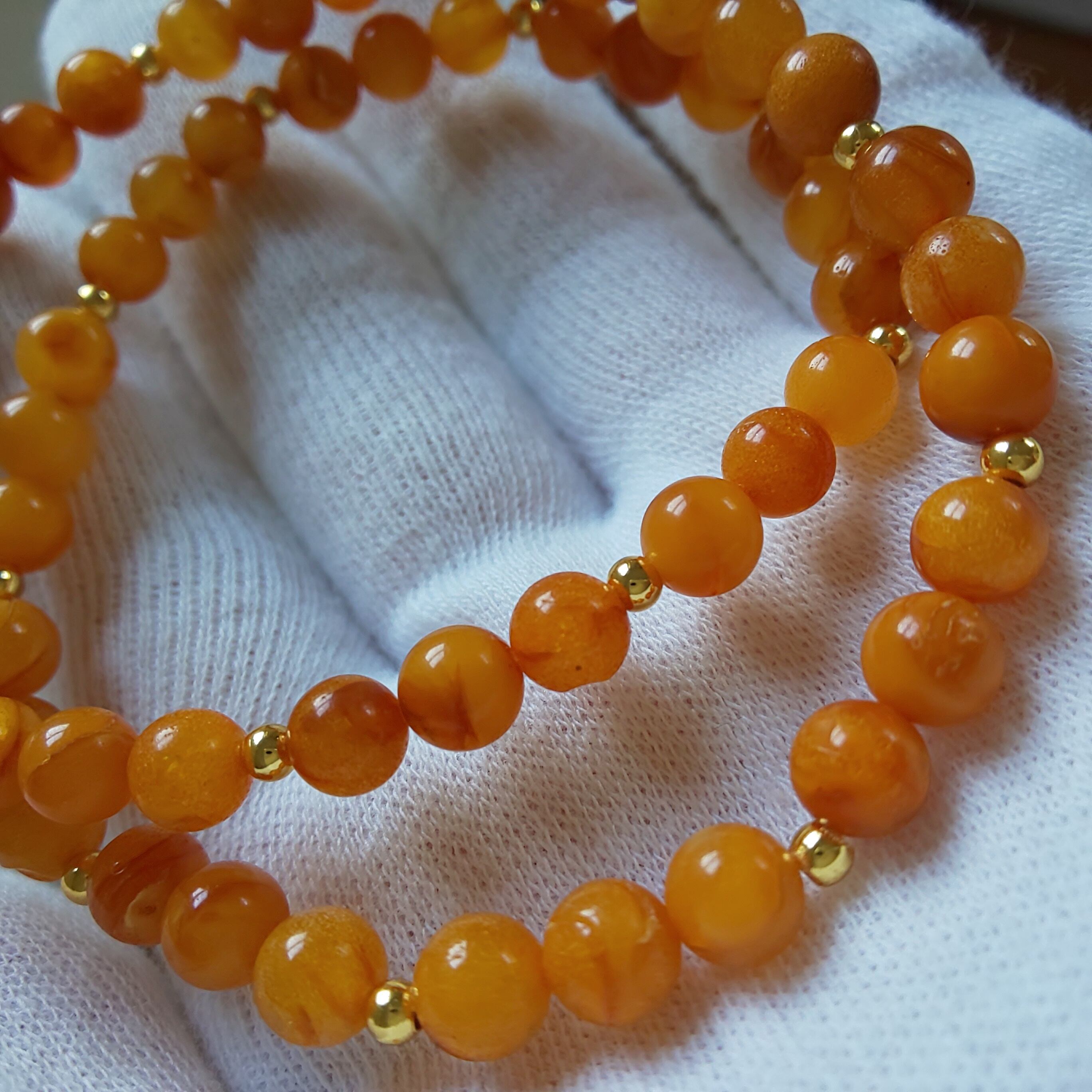 新作 バタースコッチカラー老アンバー 二連ブレス