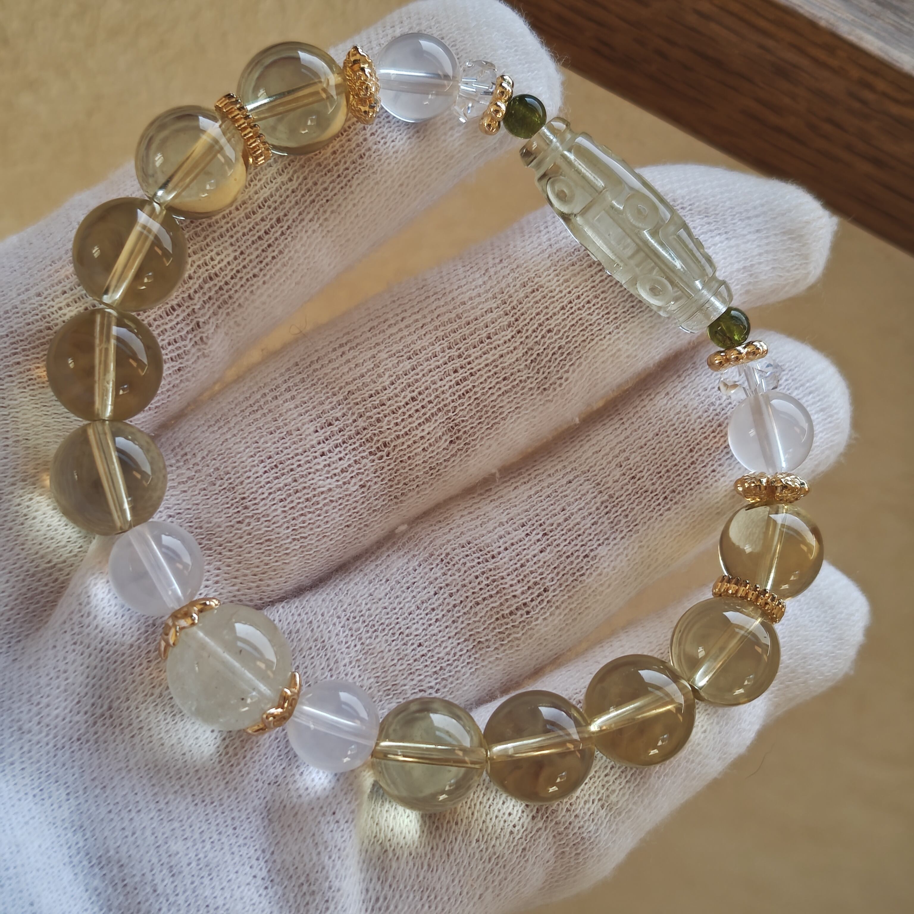 只今高騰中のオウロヴェルデではございますが、リビアングラス九眼天珠を組合せました♪