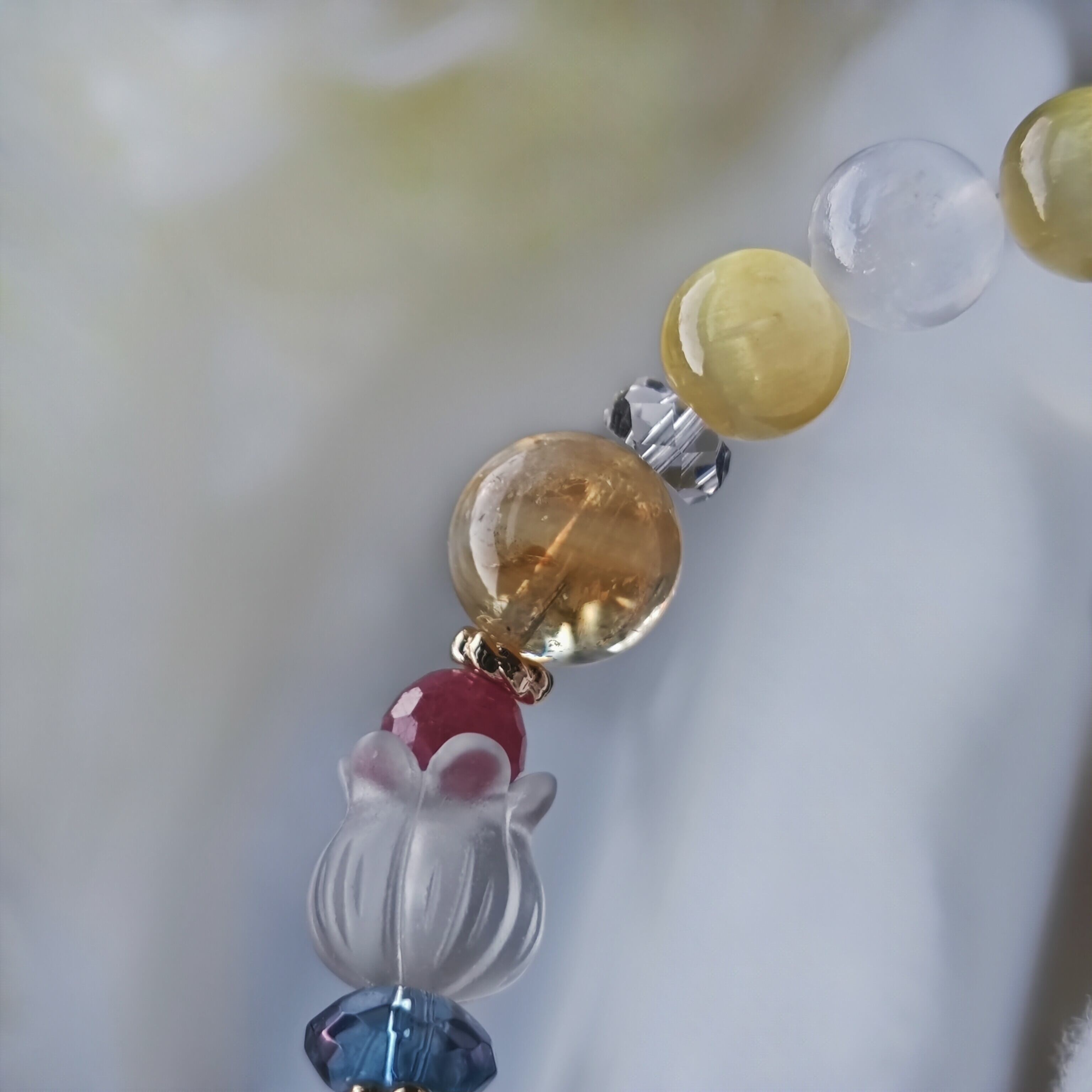 ベースはゴールデンとホワイトのセレナイトで水晶すずらんにルビーとシトリンラダーを組み合せました♪