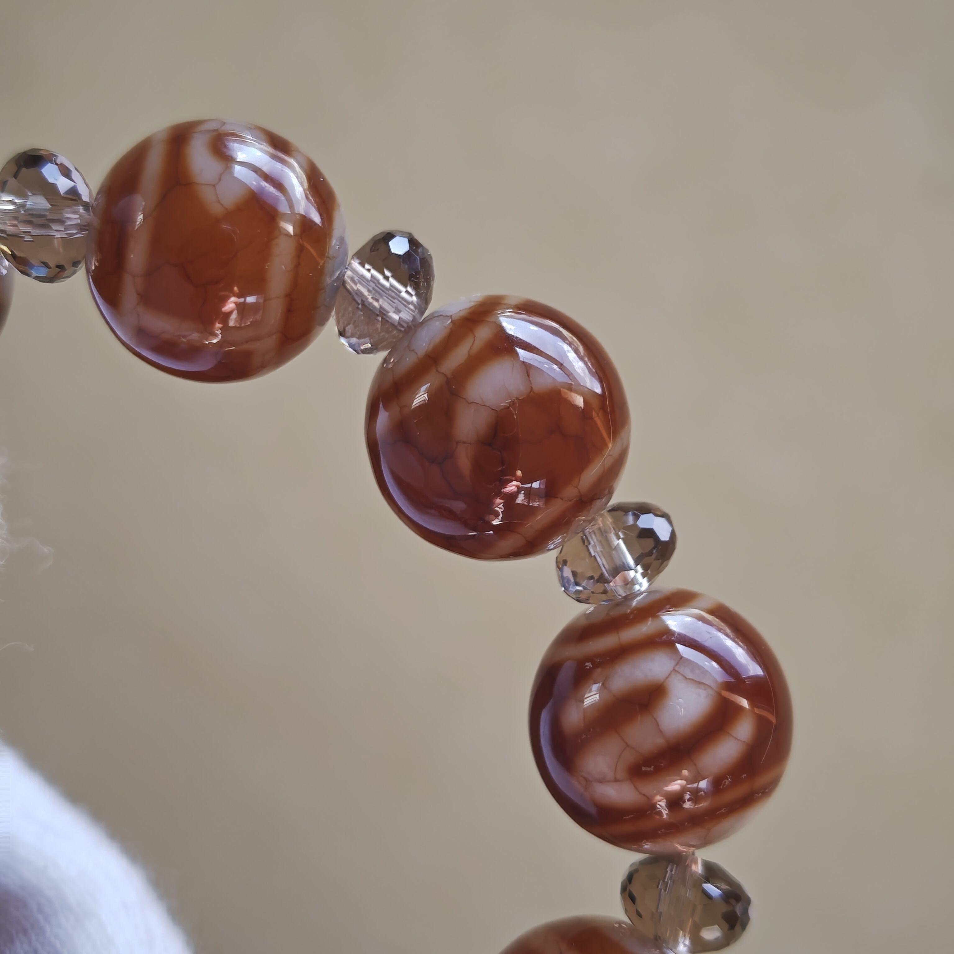 高品質なので火供龍紋天珠を存分に味わって頂ける様に金属パーツは使わず石オンリーの天珠オールで組みました♪