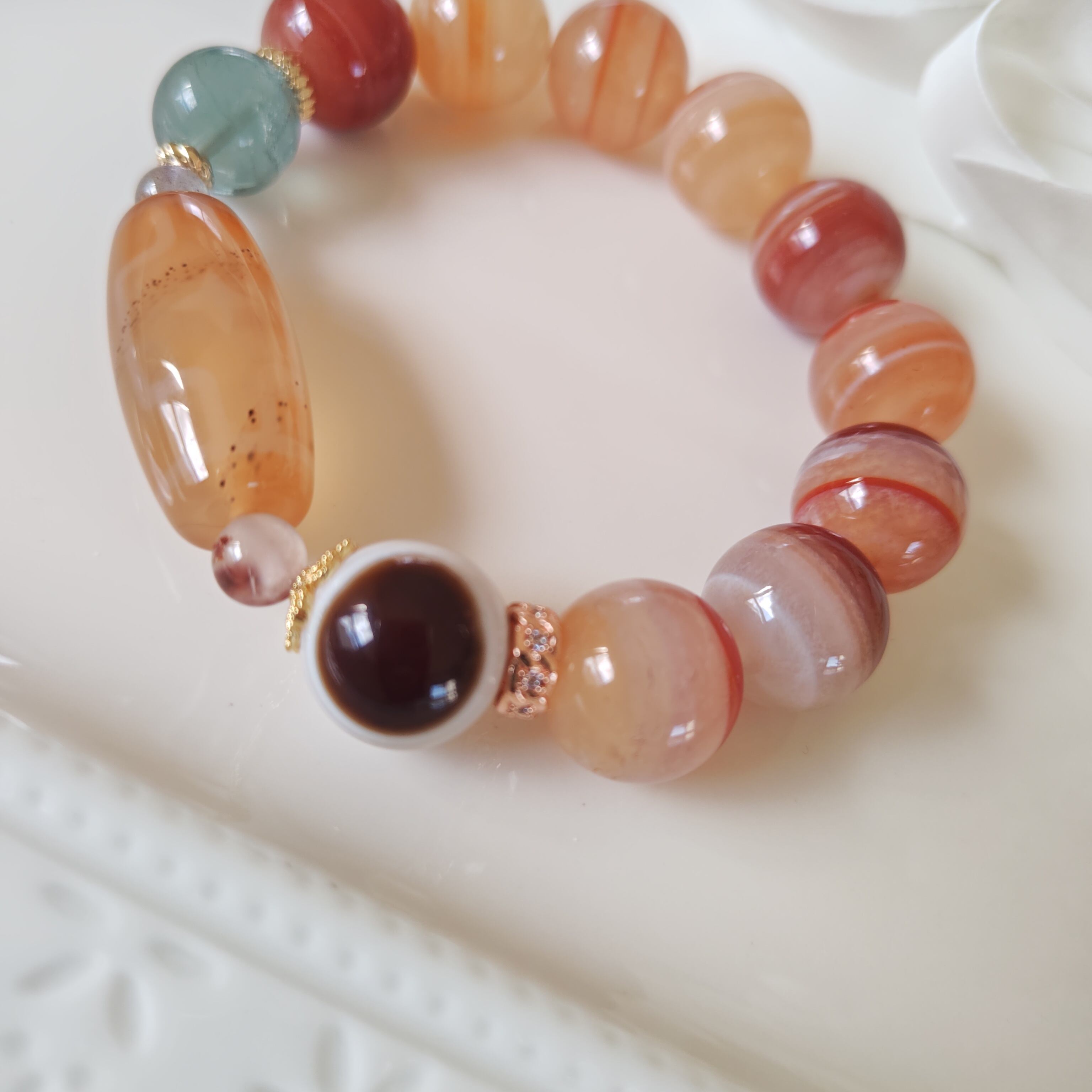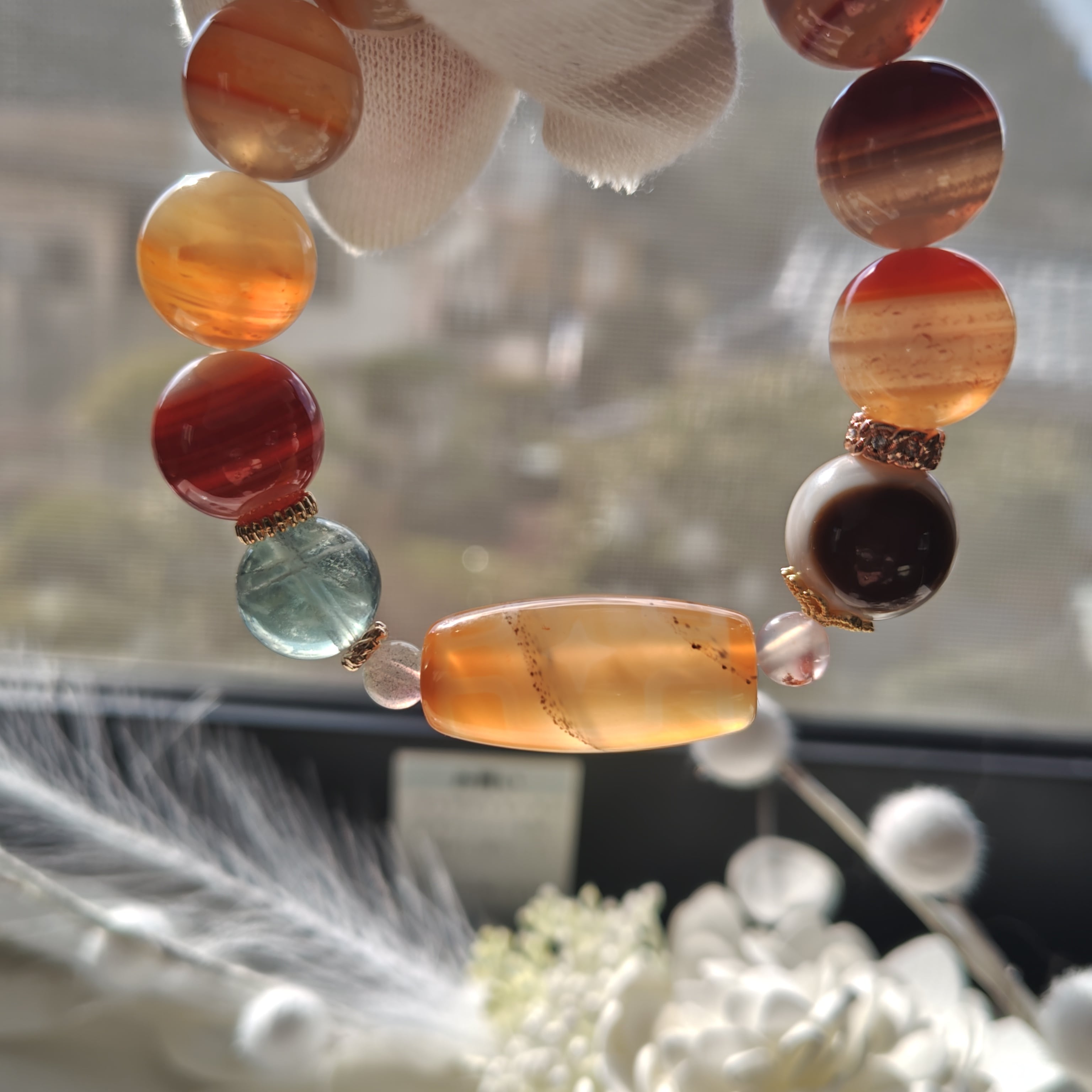 とても美しい縞瑪瑙と平安十字天珠を合わせました♪